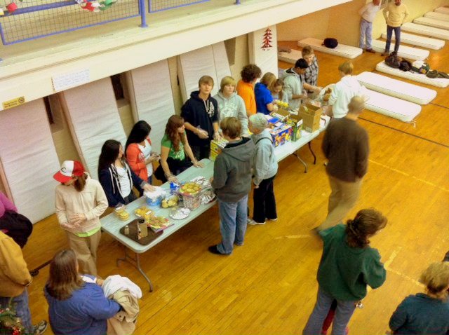 Serving at the Annual Santa's Spaghetti Supper (a fund-raiser for the Youth Ski Trip!)
